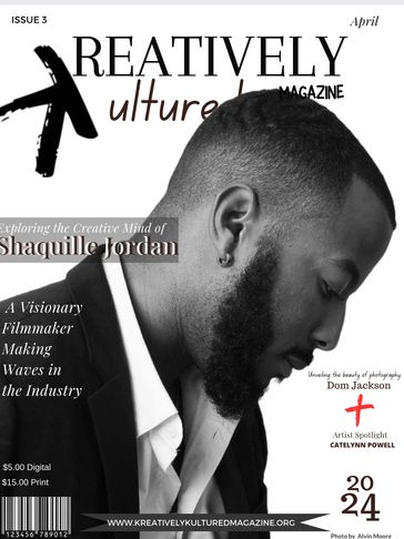 This powerful issue of Kreatively Kultured Magazine dives into the mind of Shaquille Jordan, a visionary filmmaker making waves in the industry. Through striking imagery and thoughtful storytelling, we explore his creative journey and the impact of his work. The issue also spotlights the artistry of Dom Jackson, unveiling the beauty of photography, and features an Artist Spotlight on Catelynn Powell, whose talent continues to inspire.