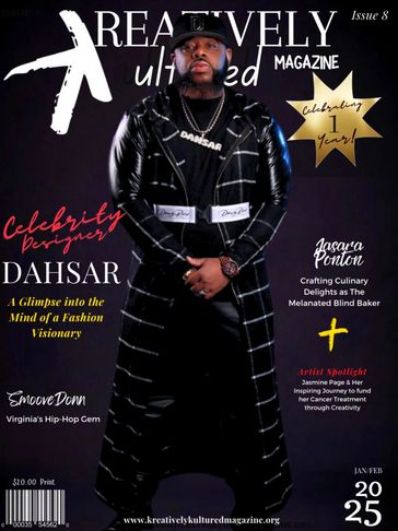 We’re celebrating one year of Kreatively Kultured Magazine with a bold and inspiring issue spotlighting Celebrity Designer Dahsar. Step into the mind of a true fashion visionary and discover the creative force behind his growing empire. This issue also features Jasara Ponton, known as The Melanated Blind Baker, crafting culinary excellence through passion and resilience. Plus, don’t miss our Artist Spotlight on Jasmine Page, whose powerful journey uses creativity to fund her cancer treatment, and a feature on SmooveDonn, Virginia’s emerging hip-hop gem.
